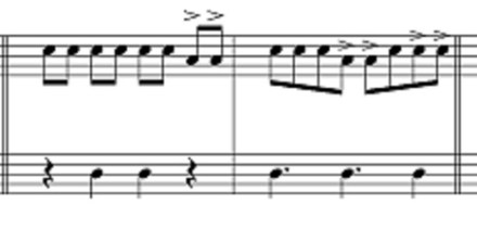 This pattern is mainly played on the bell mounted with the timbales, but also on the cymbal or handheld campana (bell).