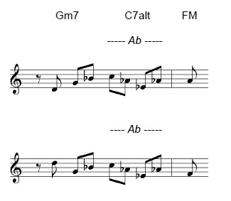 Oh, and any of these figures can be adapted for use over a minor II-V-I – just flat the 5th on the II chord and flat the 3rd on the I chord.
