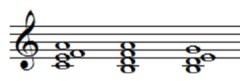 - C: we avoid the natural 4th F on a tonic major chord because it’s dissonant. This only leaves us with the 5th G, which is fine, so let’s put that in: