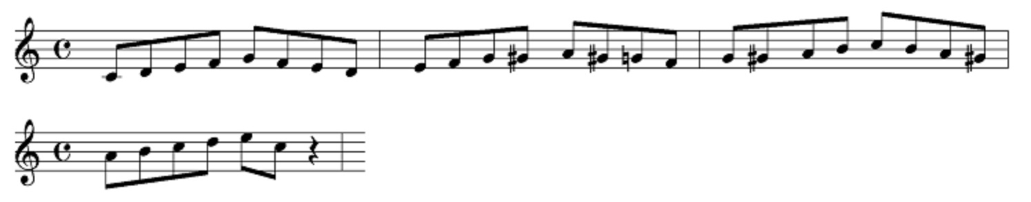 Other possibilities are: scale tone above then scale tone below, semitone above then scale tone below and semitones above and below. These enclosures can also be inverted, approaching the target tone from below then above.