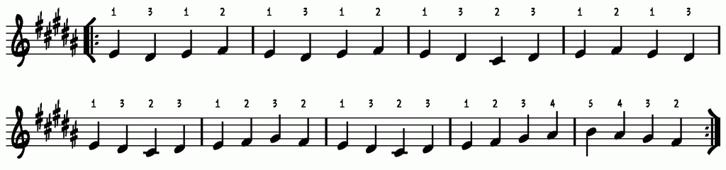 Let’s look at a couple of exercises that focus on a point where your hand position changes during a scale.